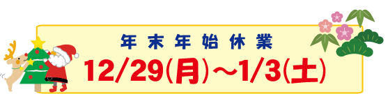 ☆年末年始休業:12/29(月)~1/3(土)☆