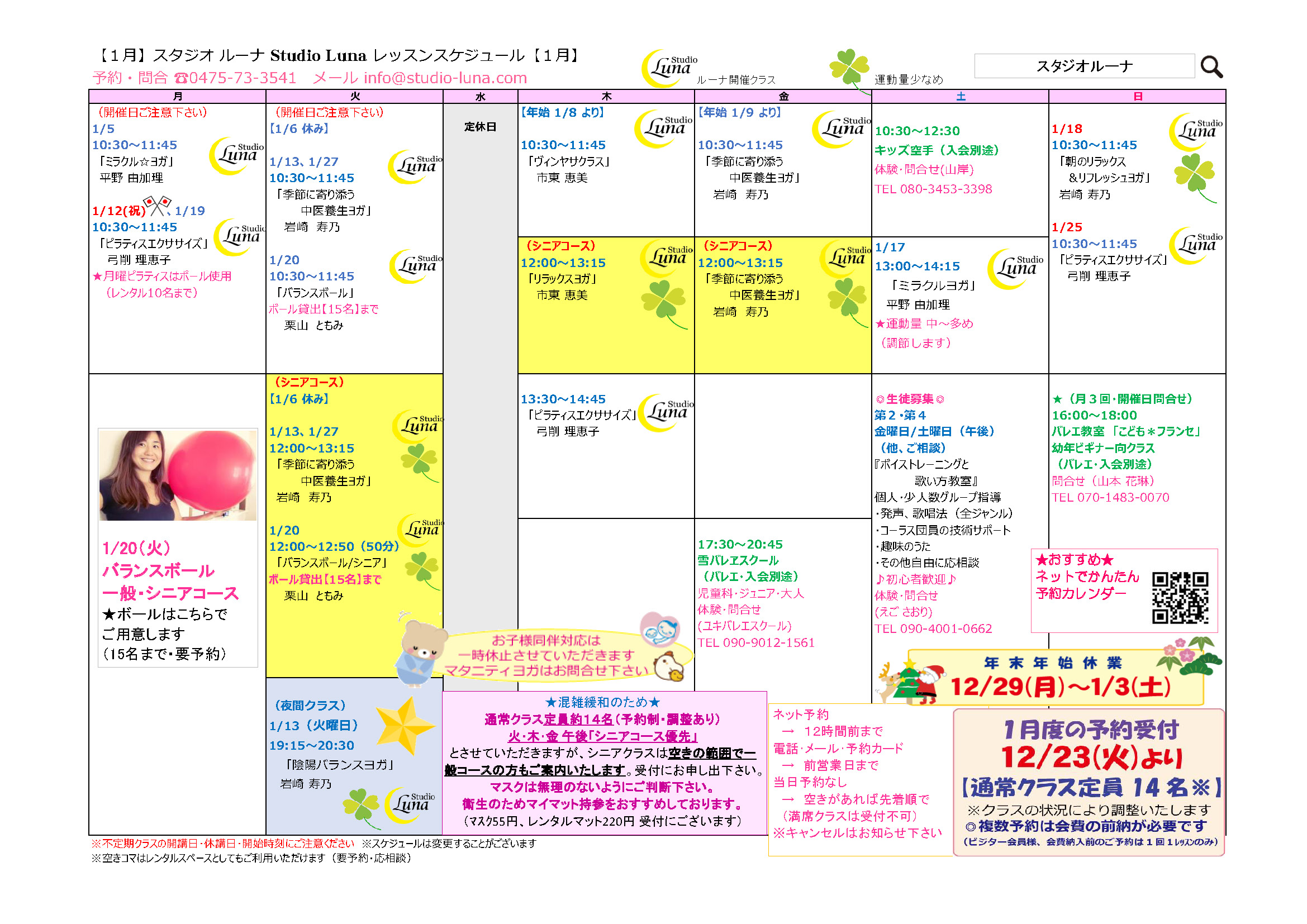 【1月のレッスンスケジュール】
