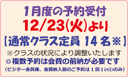 ★複数レッスンの同時予約は予約前に会費の前納をお願いいたします。