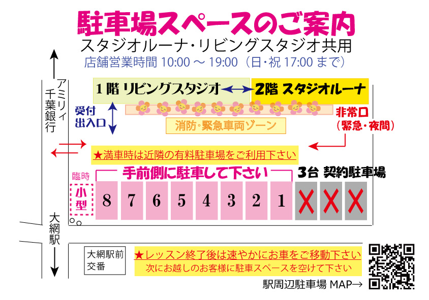 ★ 営業時間外の入場、受講前後の長時間駐車、店舗利用時以外の駐車はお控えいただけますようお願いいたします。