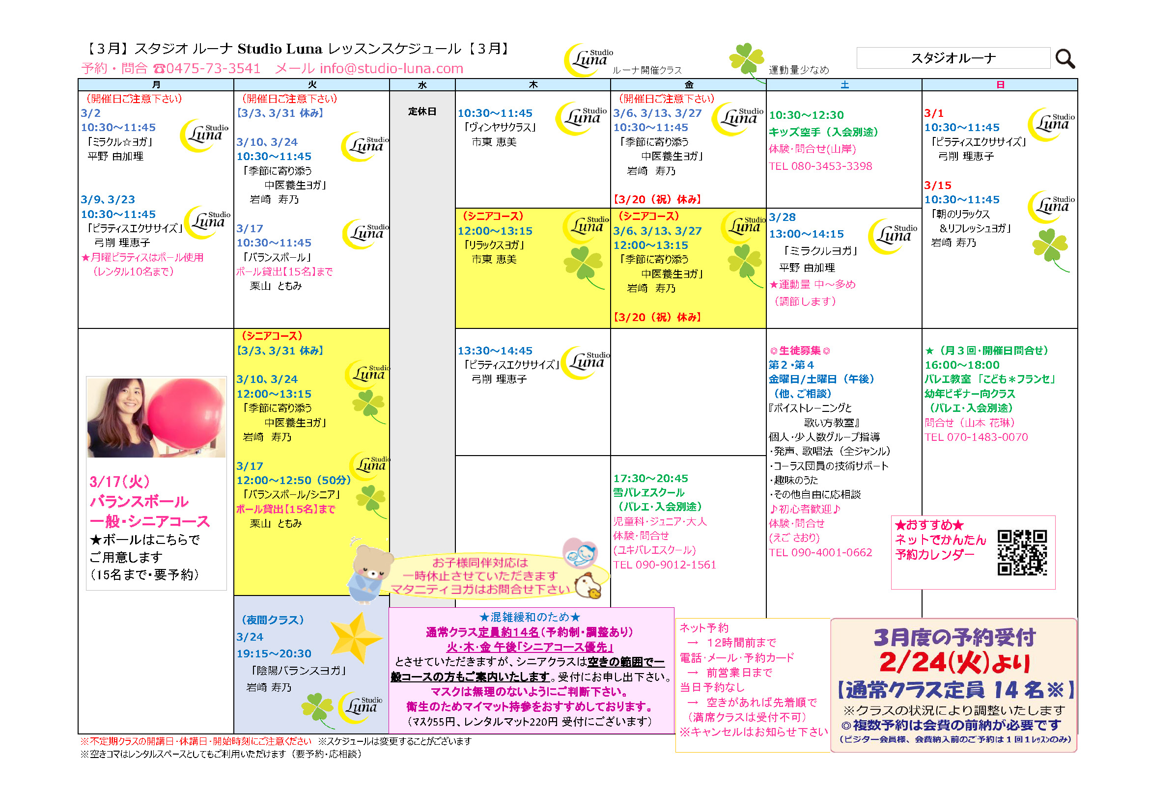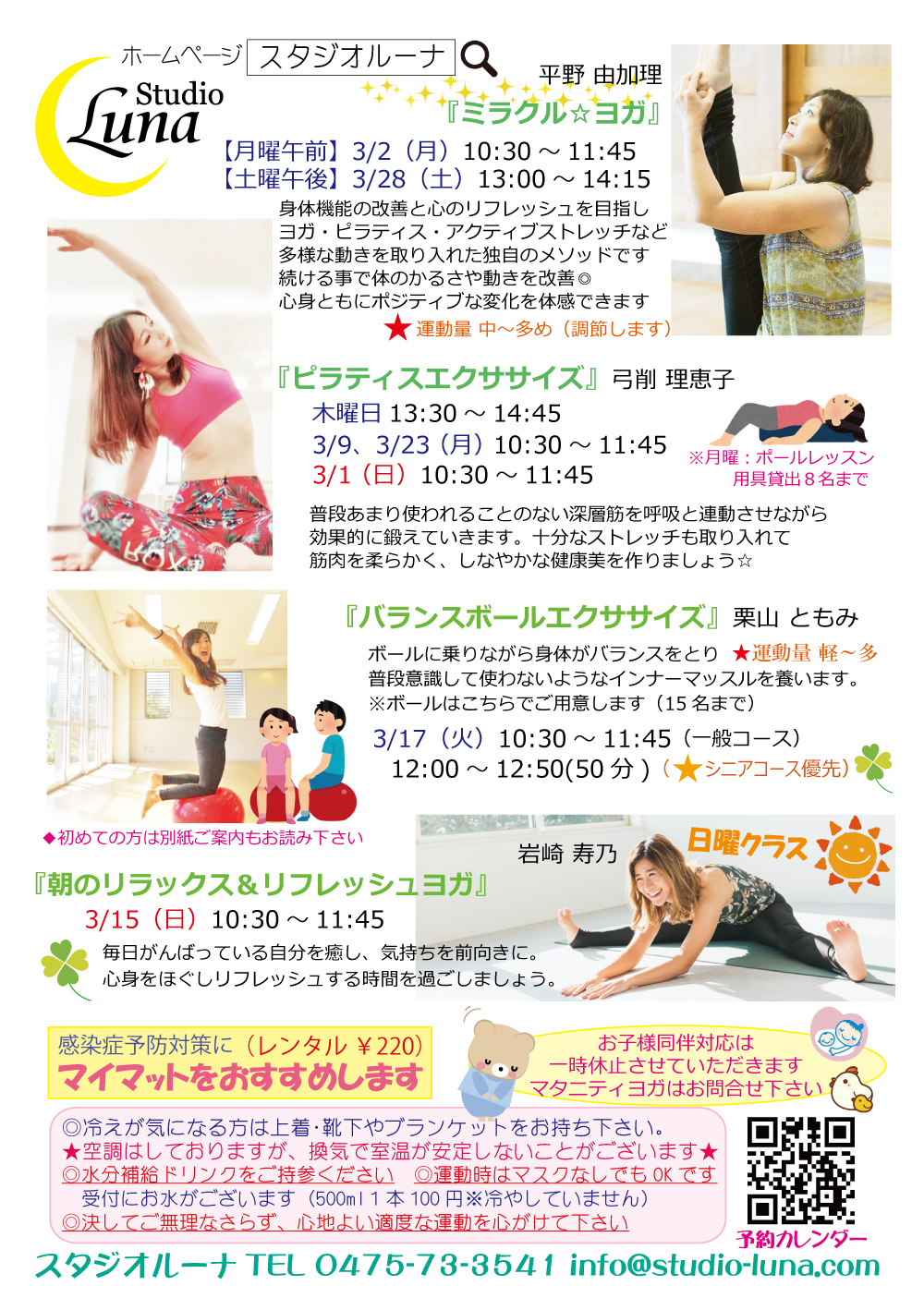 【3月レッスンスケジュール】